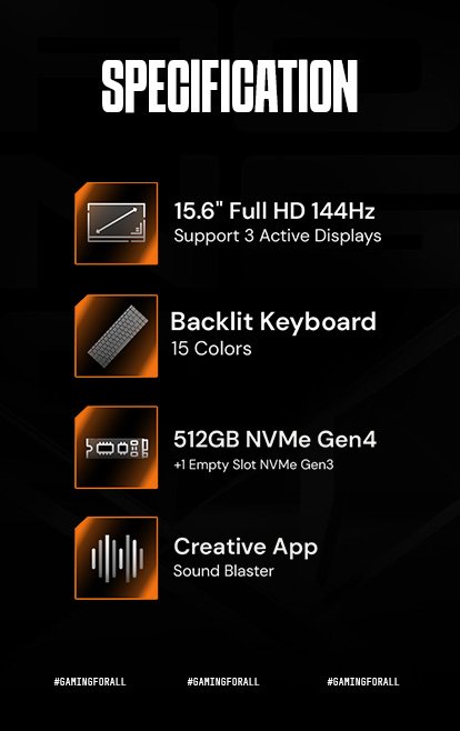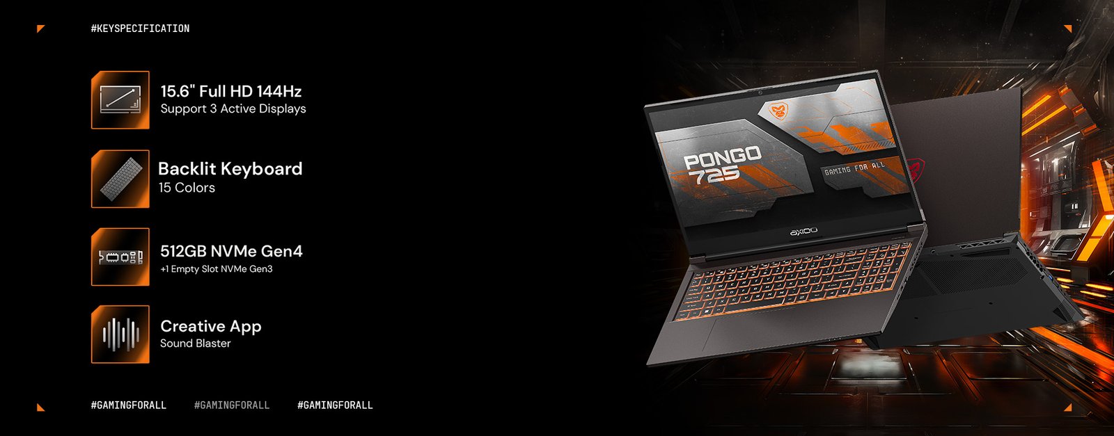 Laptop gaming yang dibekali prosesor Intel® Core™ i7-12650H dan grafis NVIDIA® GeForce RTX ™ 2050. Perpaduan ini membuat Pongo 725 mumpuni untuk bermain game AAA.