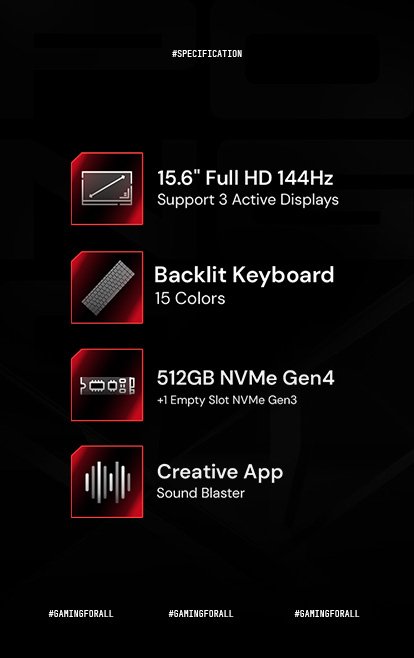 Laptop gaming di bawah 15 jutaan yang dirancang untuk para profesional kreatif, gamer, dan multitasker yang membutuhkan kekuatan pemrosesan super cepat dan visual ultra-realistis.