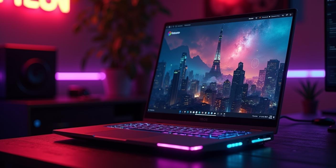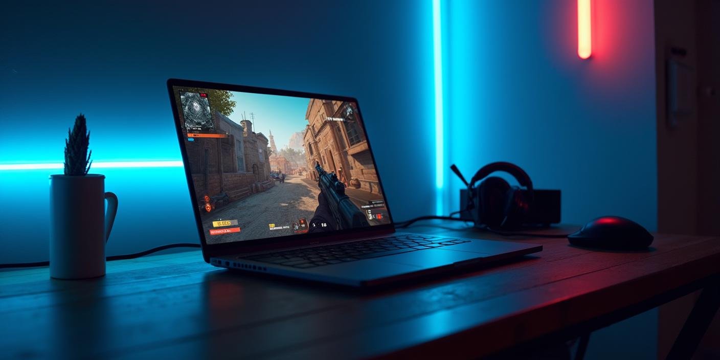 Laptop gaming yang ditenagai prosesor canggih, kartu grafis kelas atas, dan layar berkualitas tinggi