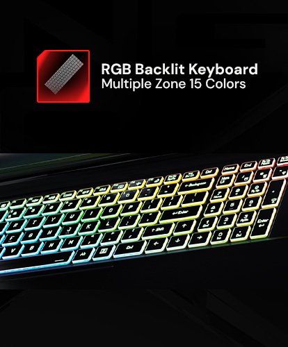 Backlit Keyboard dengan 15 pilihan warna, hadirkan pencahayaan yang dapat disesuaikan