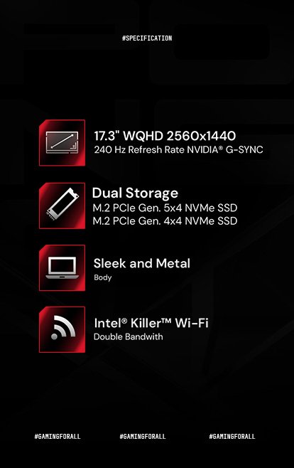 Display 17.3" WQHD dengan desain bezel tipis dan refresh rate 240Hz