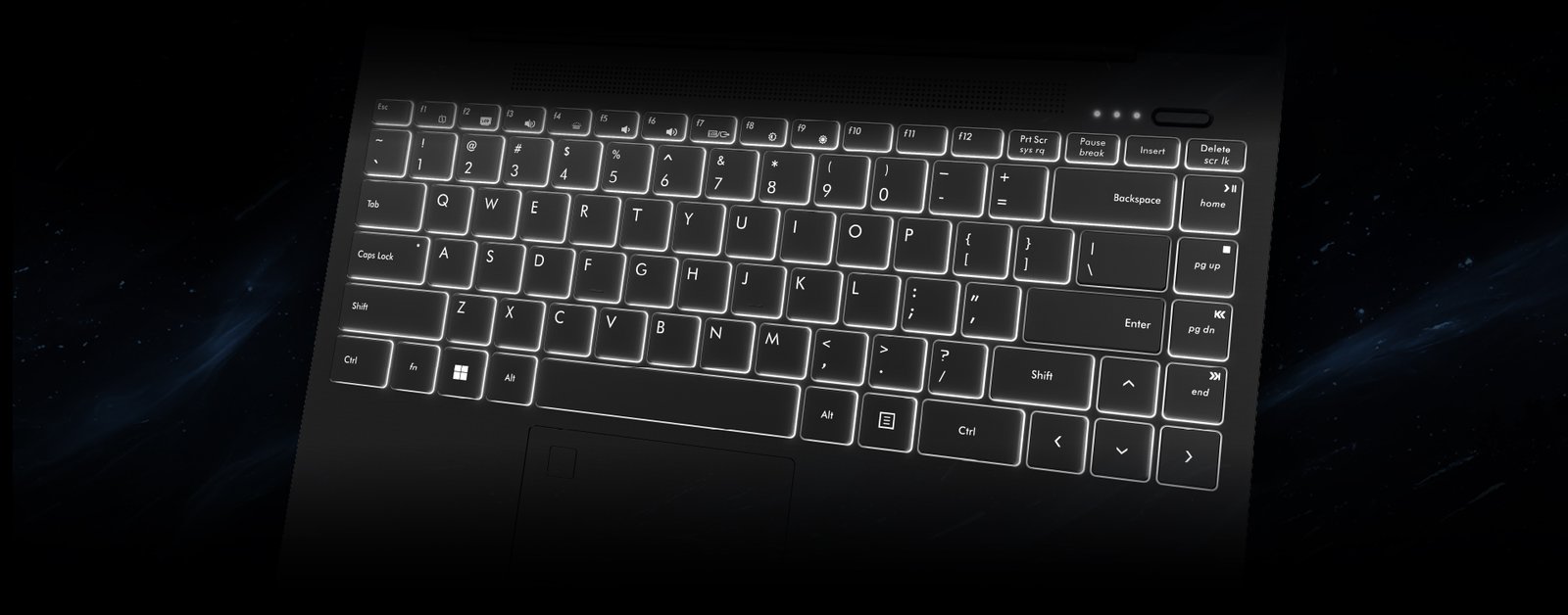 Tombol keyboard yang dilengkapi pencahayaan, memungkinkan pengguna untuk mengetik dalam kondisi cahaya rendah