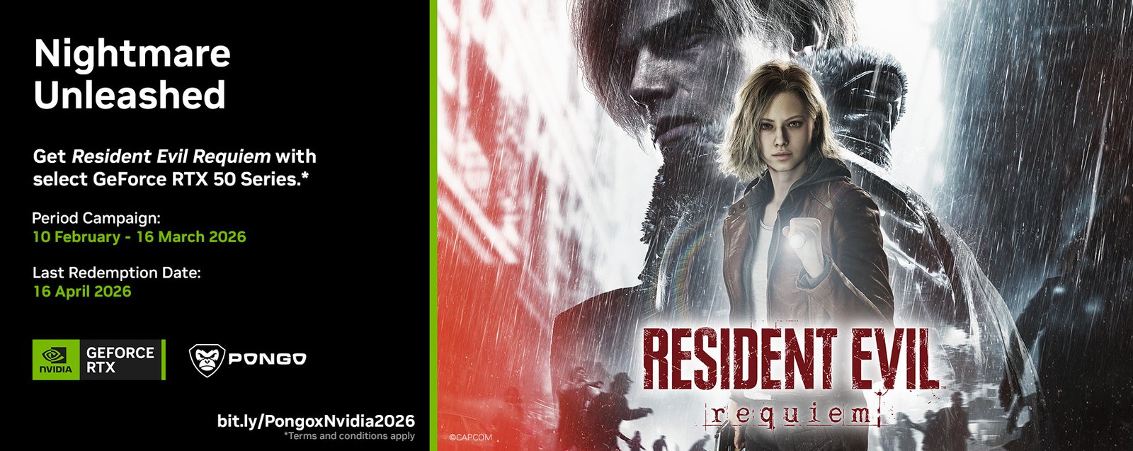 Sebagai kolaborator, Pongo mendukung pengalaman gaming yang lebih maksimal dengan teknologi grafis terbaru. Nikmati visual yang jauh lebih detail dan sinematik di PC menggunakan GeForce RTX 50 Series, berkat efek path tracing yang memukau. Performa juga makin ngebut dengan DLSS 4 (Multi Frame Generation), serta respons yang lebih cepat dan minim latensi lewat NVIDIA Reflex—membuat Resident Evil Requiem di PC terasa lebih halus, lebih tajam, dan lebih “hidup”.
